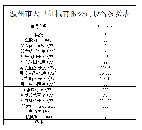 您當前的位置:首頁 / 產(chǎn)品中心 / 三模三沖冷鐓機 / └ TW10B(M6)全自動多工位冷鐓機 / TW10B-3SXL全自動多工位冷鐓機